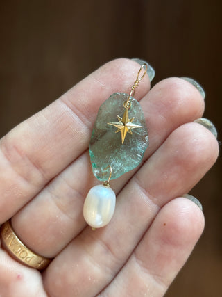 Light Green Ancient Roman Glass and Pearl and Star Pendant