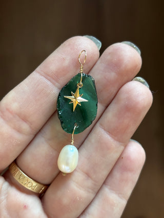 Green Ancient Roman Glass and Pearl and Star Pendant